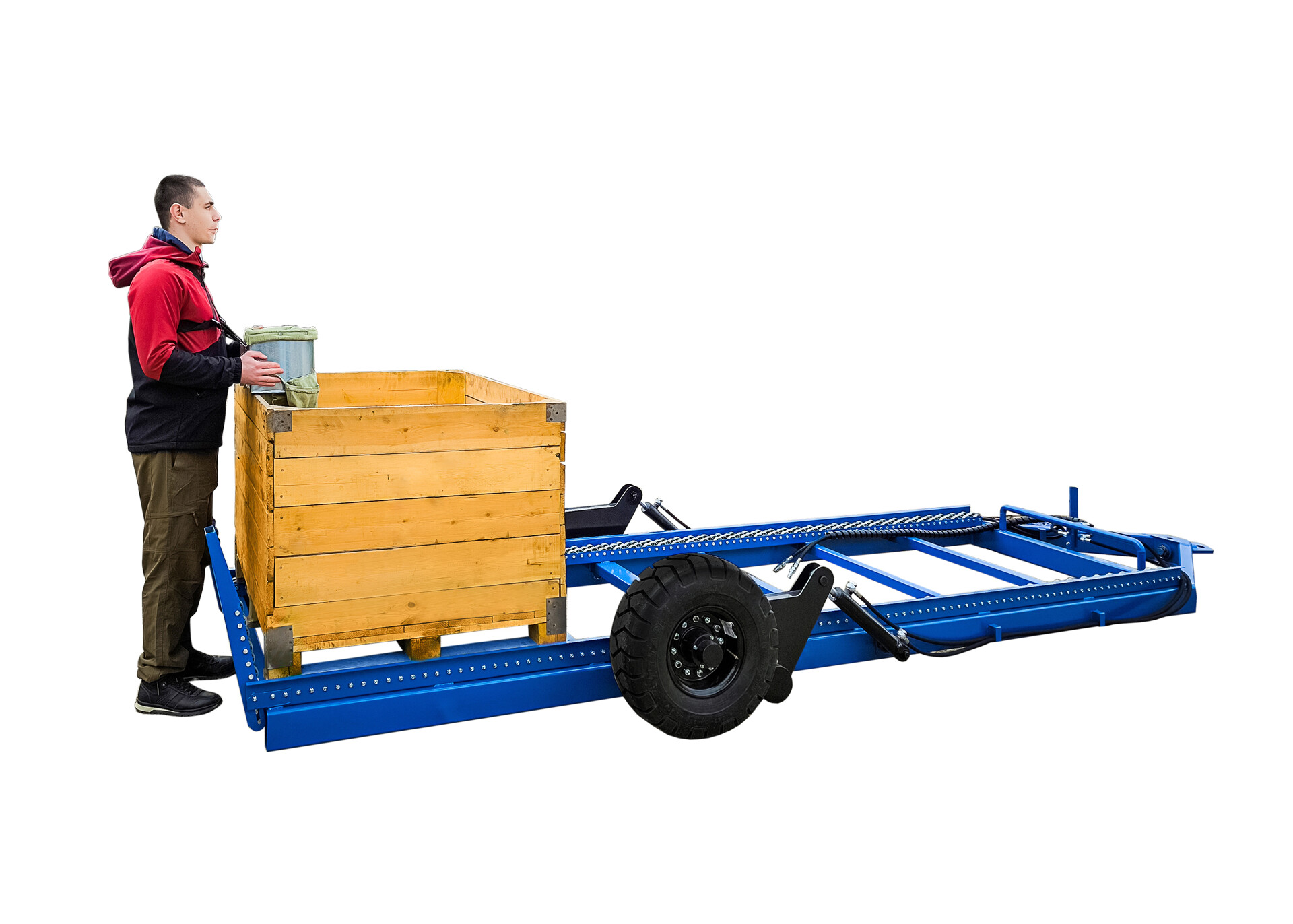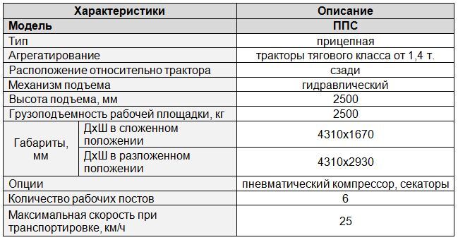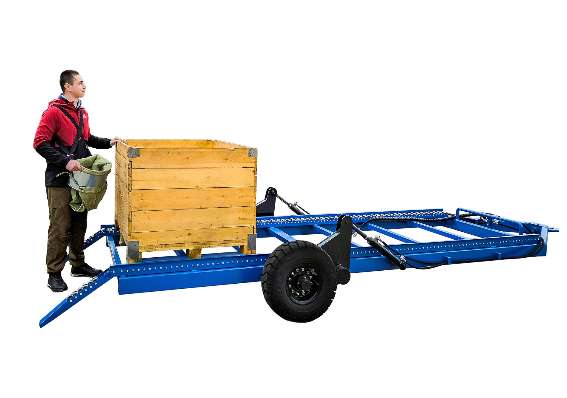 Платформа предназначена для механизированной обрезки сада и сбора плодов в труднодоступной зоне верхнего яруса, с пневматической системой для обрезки веток или без пневматики, с совмещенными осями или передней поворотной осью. Платформа работает непосредственно от гидравлики трактора. Управление с помощью гидравлического распределителя установленного на тракторе или платформе. Ролики позволяют легко двигать контейнеры вдоль платформы.