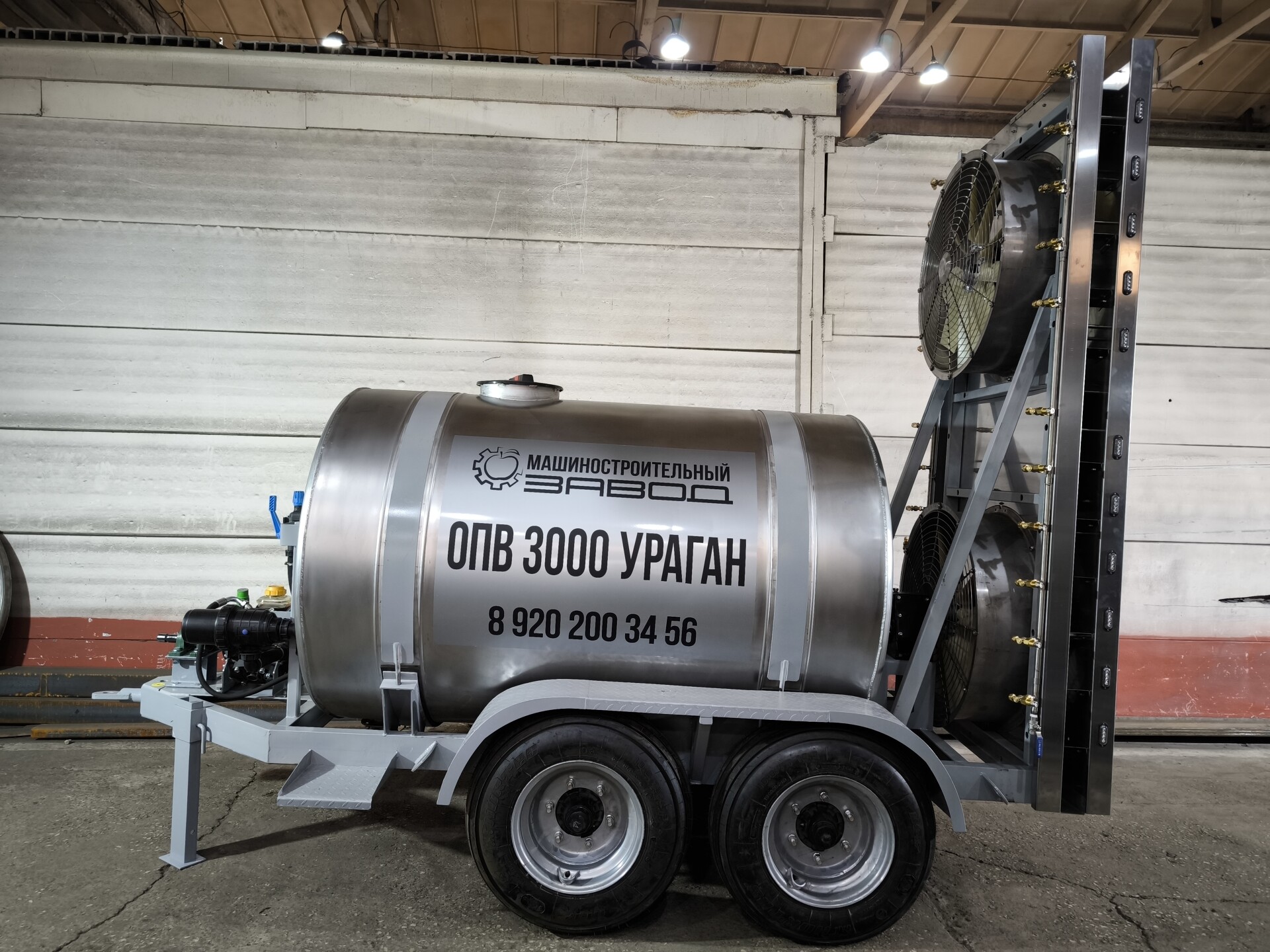 Опрыскиватель двухвентиляторный ОПВ 3000 Ураган предназначен для химической защиты от вредителей и болезней многолетних насаждений в средних и крупных садах с высотой от 3 до 6 м. Усиленный воздушный поток обеспечивает более качественную обработку верхнего яруса деревьев.