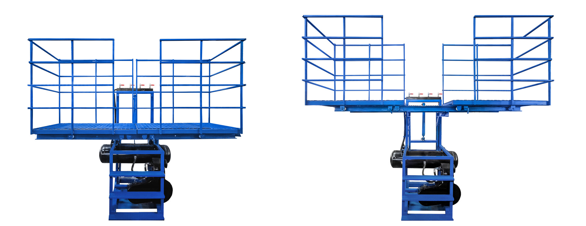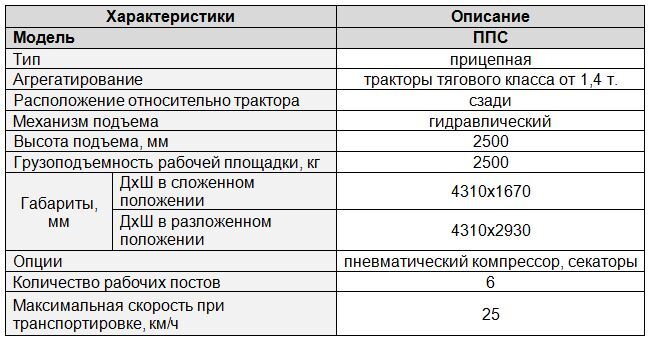 Платформа предназначена для механизированной обрезки сада и сбора плодов в труднодоступной зоне верхнего яруса, с пневматической системой для обрезки веток или без пневматики, с совмещенными осями или передней поворотной осью. Платформа работает непосредственно от гидравлики трактора. Управление с помощью гидравлического распределителя установленного на тракторе или платформе. Ролики позволяют легко двигать контейнеры вдоль платформы.