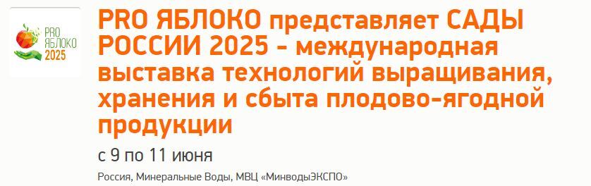 Даты проведения – 09-11 июня 2025г. Адрес проведения – МВЦ «Минводы ЭКСПО», г.Минеральные Воды, ул.Автомобильная 31. Приглашаем посетить наш стенд – №U20, открытая площадка. https://proyabloko.pro/